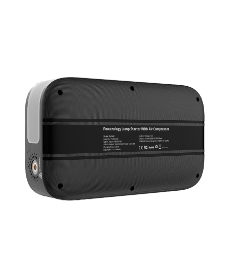 شاحن سيارة و منفاخ إطارات متنقل Powerology Jump Starter With Air Compressor سعة 11200 مللي أمبير ، يتميز بالجودة والكفاءة العالية، يمكن أن يكون بمثابة باور بانك لتزويد الهواتف المحمولة بالطاقة بالإضافة لكونه شاحن سيارة متنقل ذو تيار قوي، خفيف الوزن وسهل الحمل، كما أنه ذو تصميم عصري وأنيق.