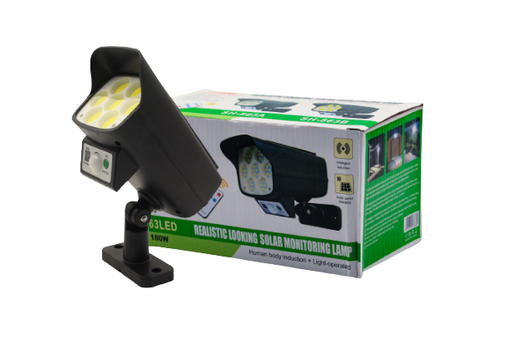 هذا المصباح الشمسي يشبه كاميرا المراقبة، ومجهز بليد ساطع، والذي يمكن أن يضيء حديقتك او اي منطقة كبيرة. الغلاف الخارجي مصنوع من مادة ABS الذي له وظيفة مقاومة الماء، مما يجعل الجسم الخارجي قادرًا على تحمل سوء الأحوال الجوية.